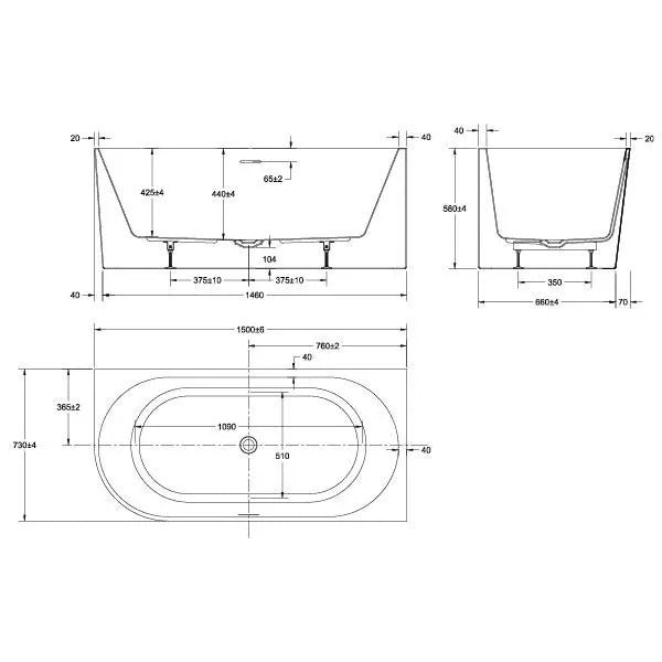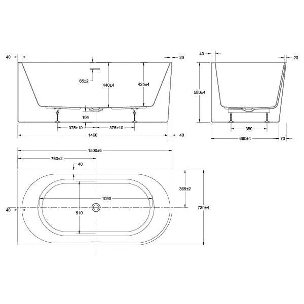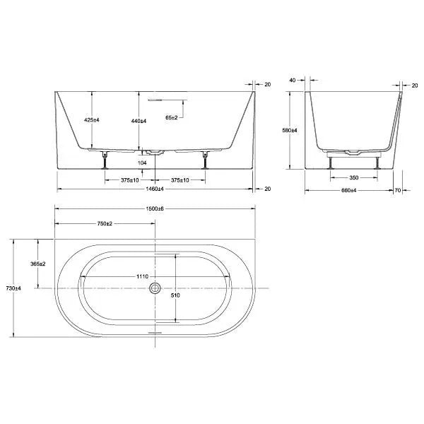 Adore Bath Tub Back to Wall & Corner, Freestanding with Overflow| Oceano