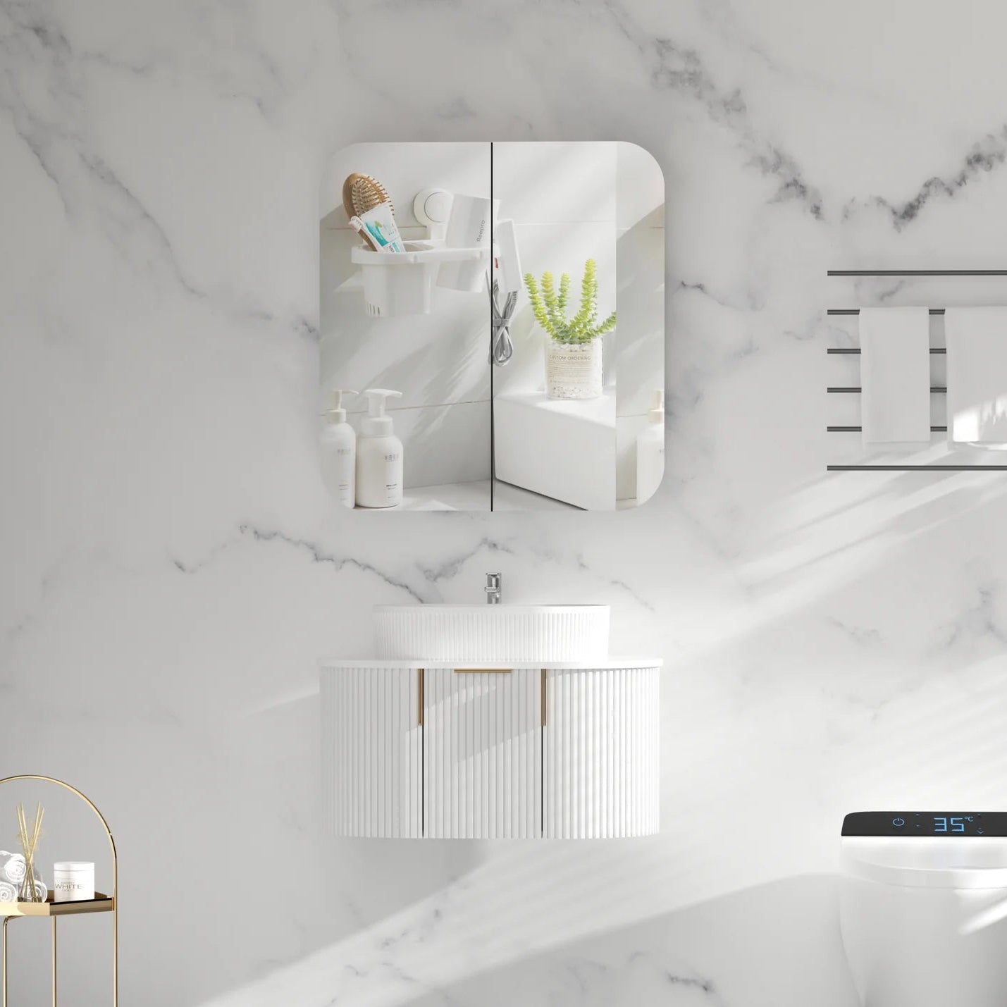 Bring a touch of modern elegance and practicality to your bathroom with the CARYSIL Shaving Cabinet. Expertly crafted from durable plywood and finished in a smooth matte white melamine, this cabinet combines timeless design with everyday functionality.