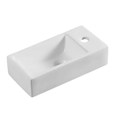 A modern, space-saving basin designed for small bathrooms, powder rooms, and tight spaces. Crafted with fine ceramic and finished in a premium gloss white glaze, this compact unit delivers both style and durability.