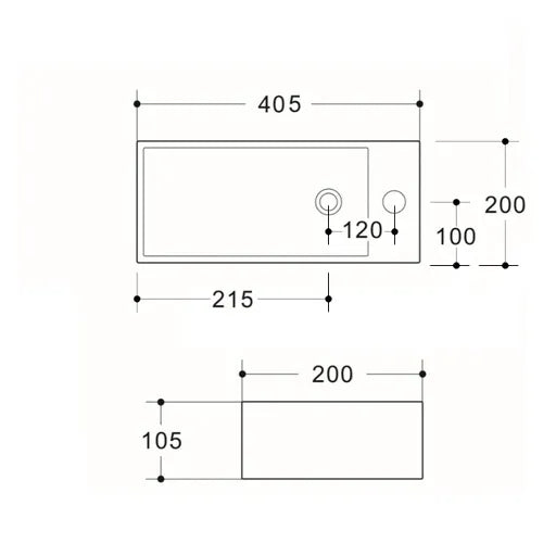 Compact Wall Hung 405x200x105 R/H and L/H Basin