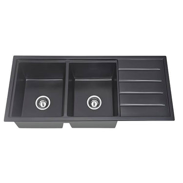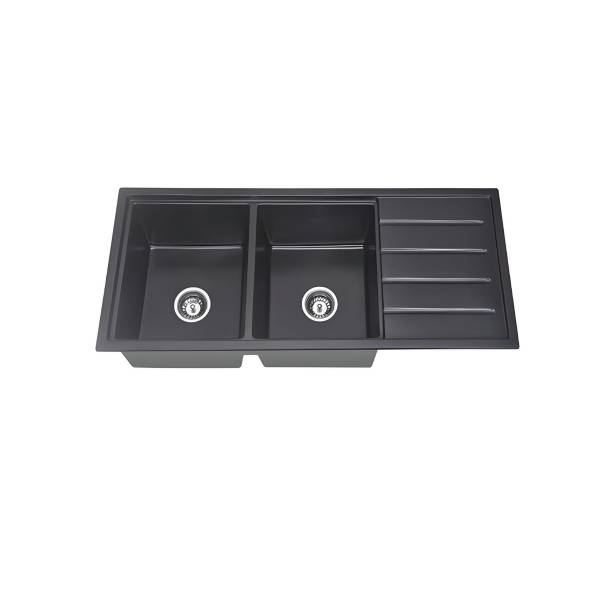 ROK Carbon Granite Double Bowl Sink with Drainer | Cob & Pen