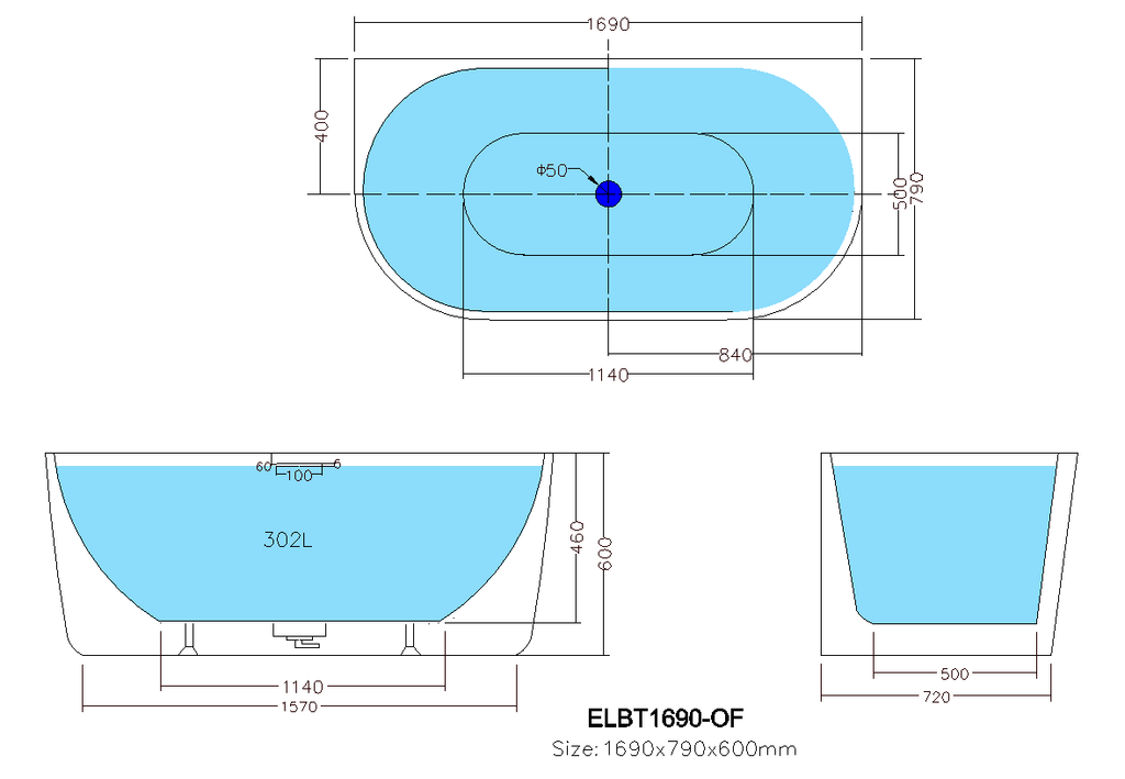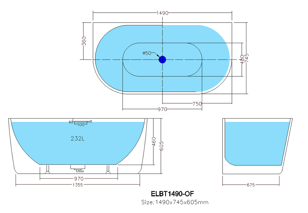 Elivia Back to Wall Bathtub (Overflow/No Overflow) | Ceto