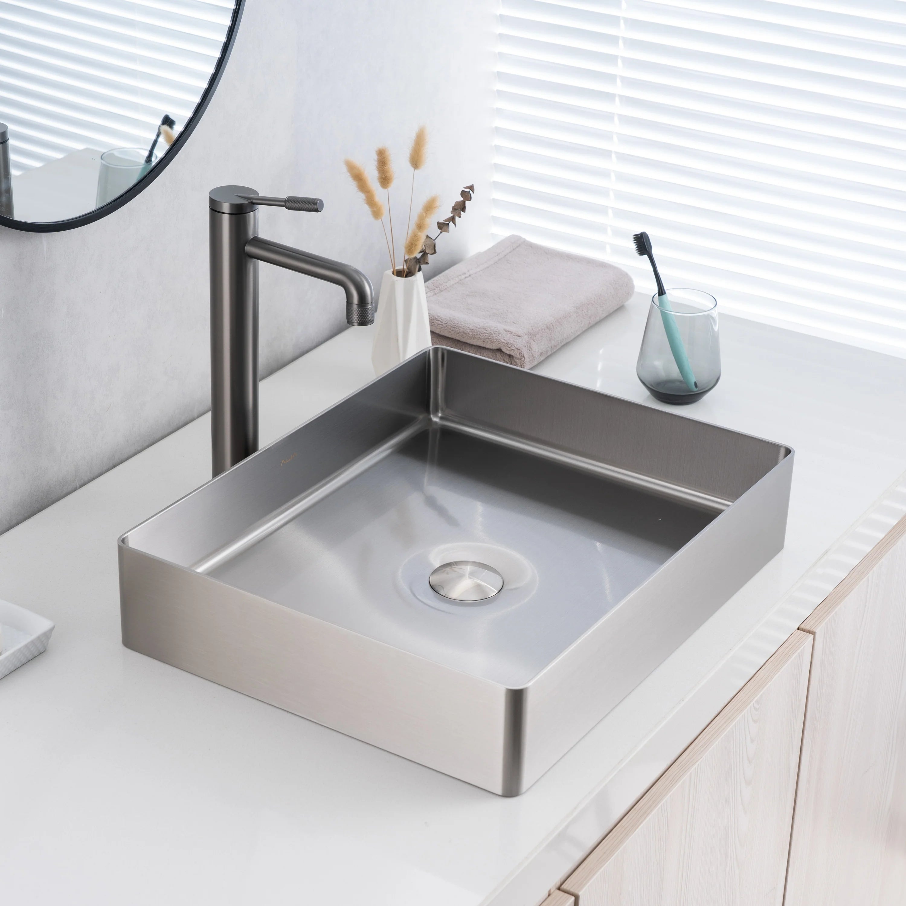Stainless Steel Rectangular Basin L500XW400X110H Modern Bathroom Sink | Alia Global