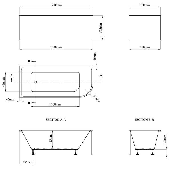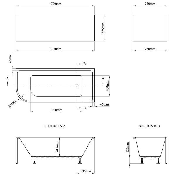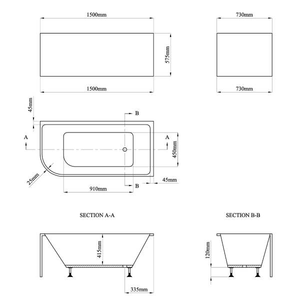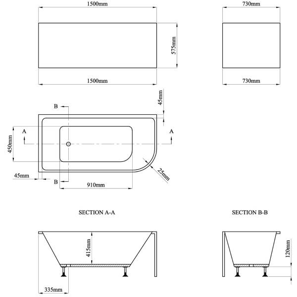 Essence Symmetry Corner Back to Wall Bathtub 1500/1700mm | Cob&Pen