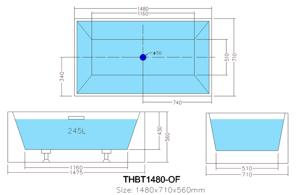 Theo Back to Wall Multifit Glossy Bathtub with Overflow | Ceto