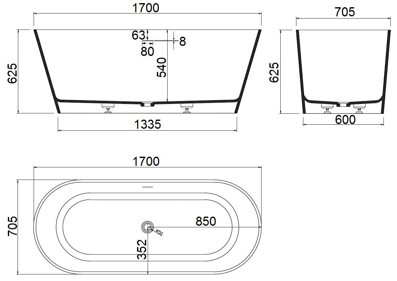 - Sleek and Modern Design: The bathtub features smooth, clean lines and an elegant oval shape, adding a contemporary touch to your bathroom.