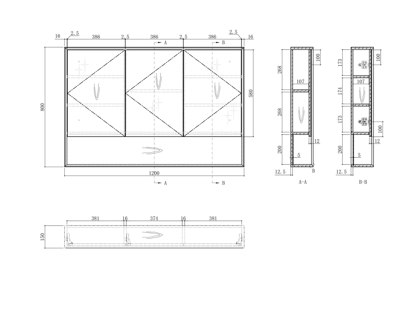 - Mirrors size less than 1200mm