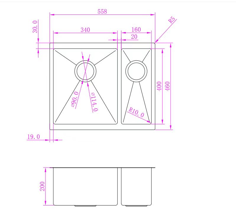 550mm Gun Metal handmade Stainless Steel Kitchen Sink
