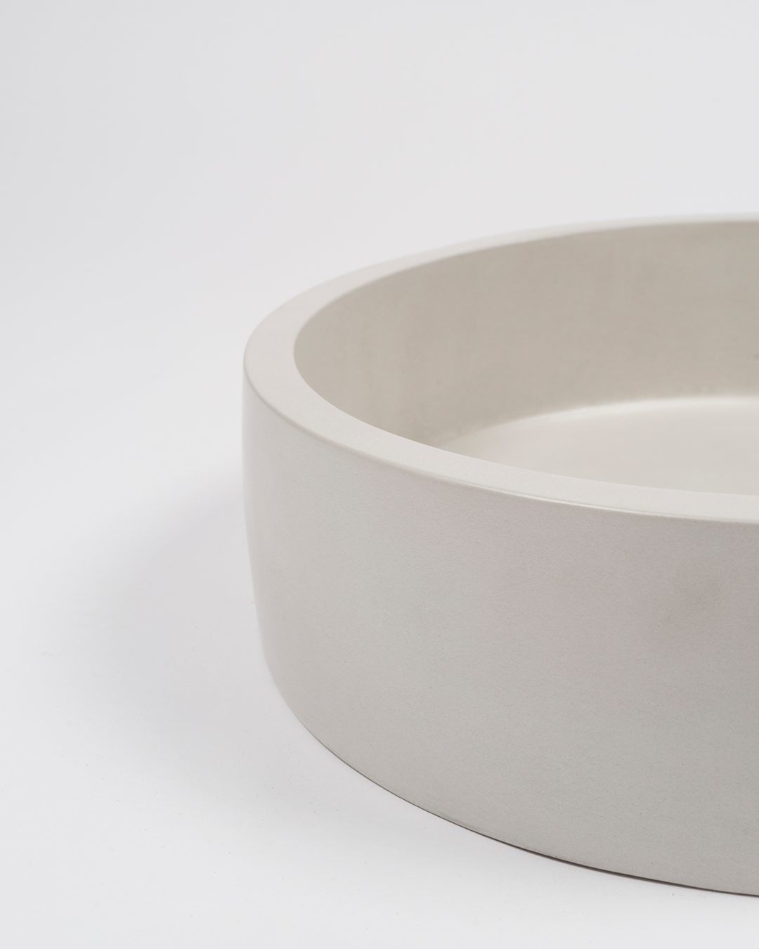 With a sleek, thinner wall, the Hoop Basin adds a refined touch to the bathroom. Detail shot featured in Ivory. Nood Co Concrete colours, feel, and aesthetic can look different in photos.