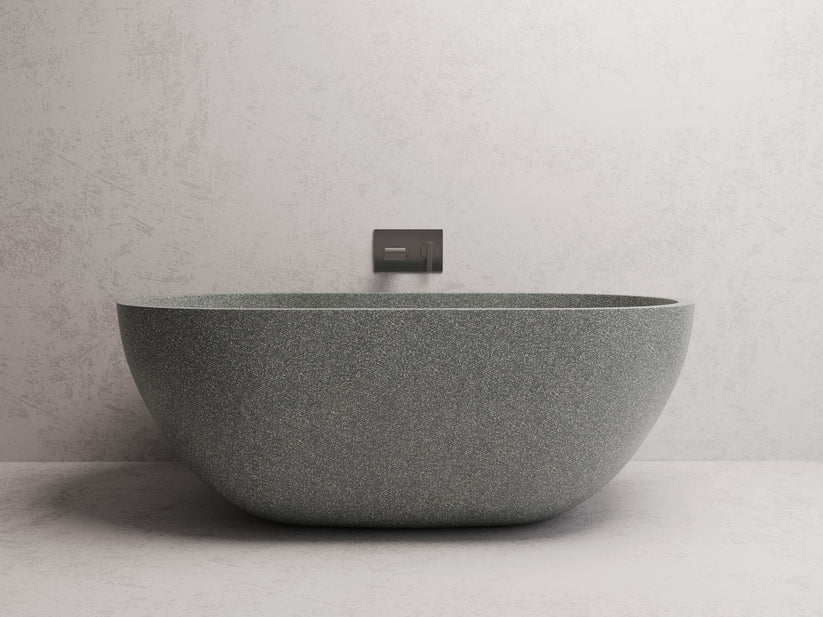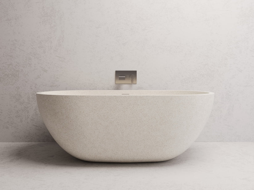 Created by Madu Living, the Honey terrazzo bathtub showcases exquisite symmetry with its crisp lines and gently tapered base. This timeless oval design effortlessly combines elegance and functionality, seamlessly blending into any bathroom decor. Ideally sized for compact spaces, the Honey tub offers a deep-soaking experience that allows for full immersion, making it the perfect balance of style and practicality. Additionally, the bath features a void underneath, providing room for a flexidinger if needed. These can be ordered on request through us by contacting our team.