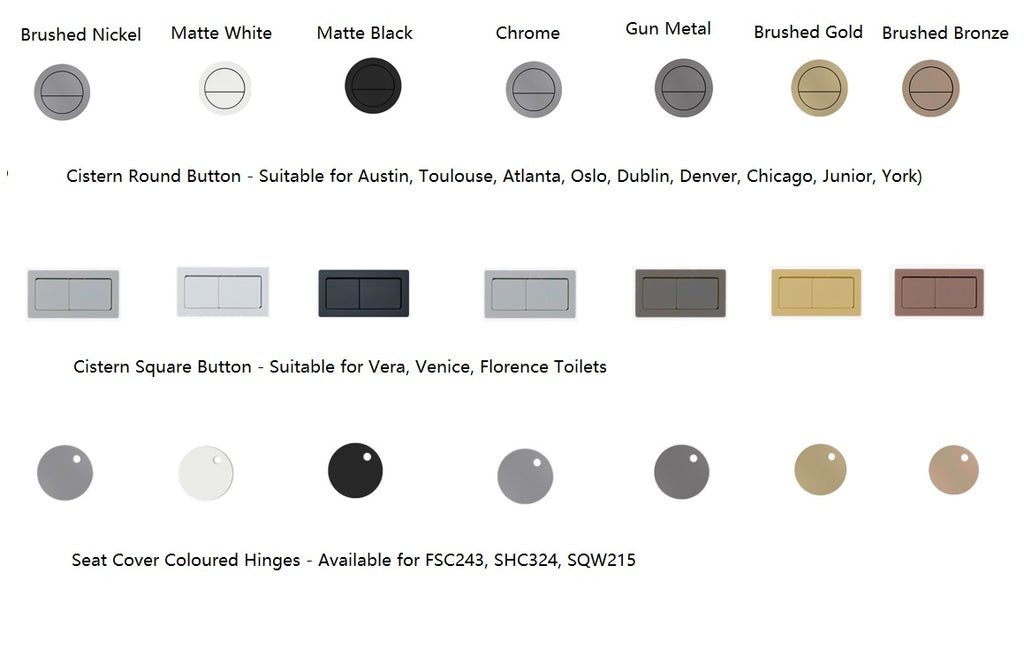 Square Toilet Flush Button with Seat Hinges Cover Set | Noveen