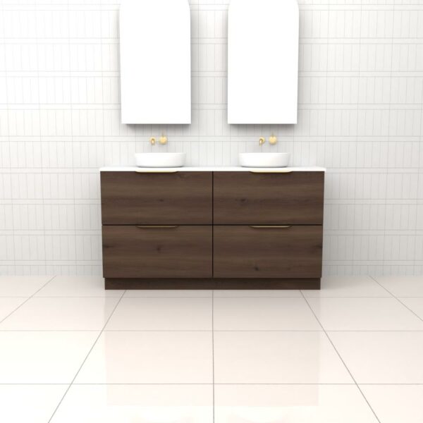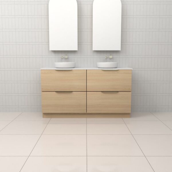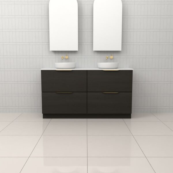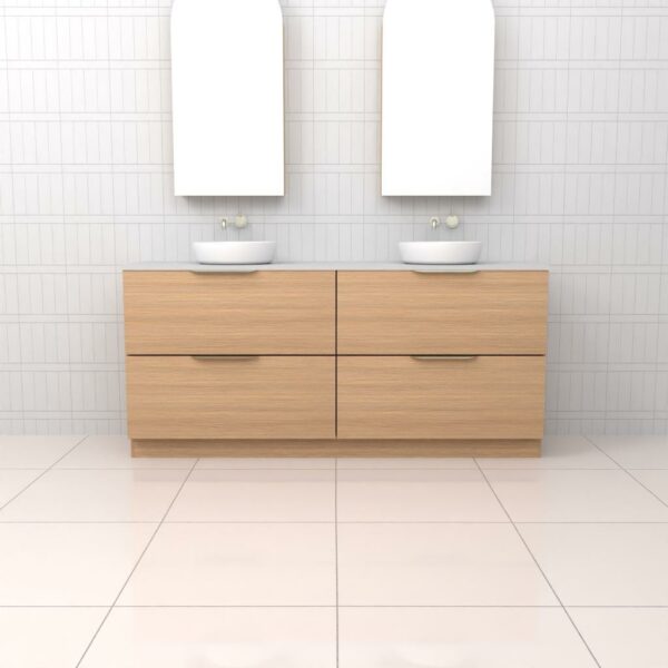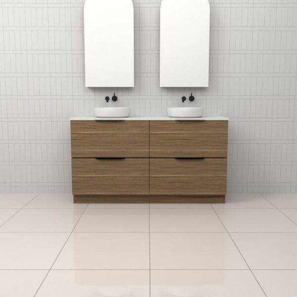 Introducing Celeste Duo Freestanding Bathroom Vanity in stunning Blackbutt timber veneer. Expertly made in Australia, this vanity combines aesthetic appeal with exceptional functionality.