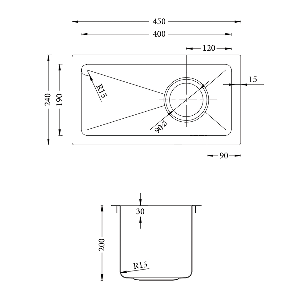 Atlas Handmade Kitchen Sink - 240x450x200mm | BestBM