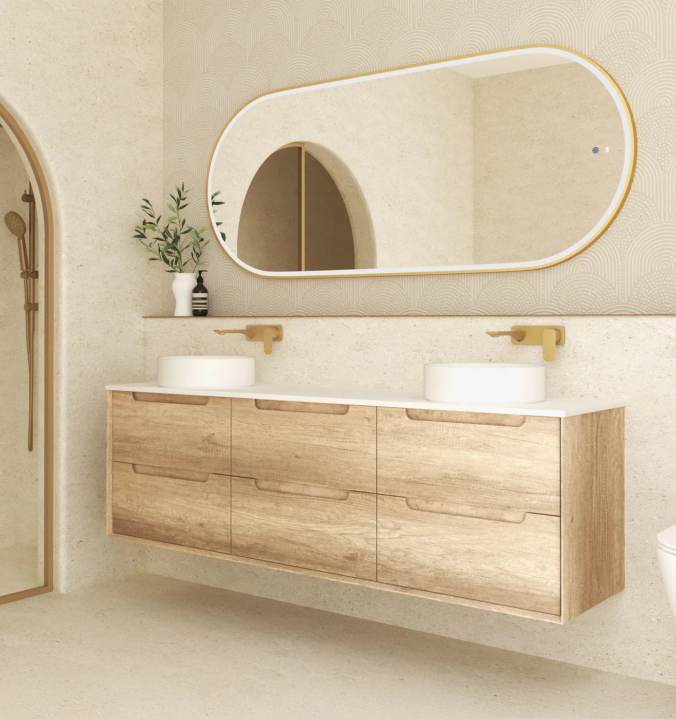 A warm and inviting oak grain finish brings the organic beauty of timber into your bathroom. Pairs beautifully with white stone tops, matte tapware, or brushed metallic accents. -
