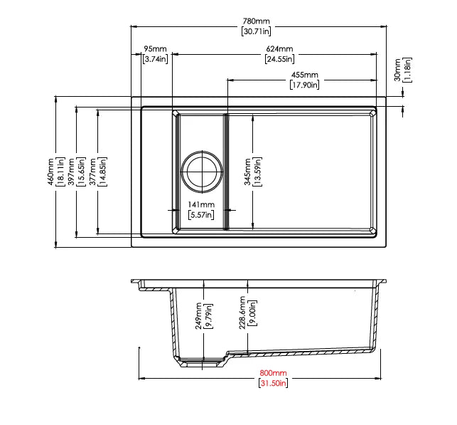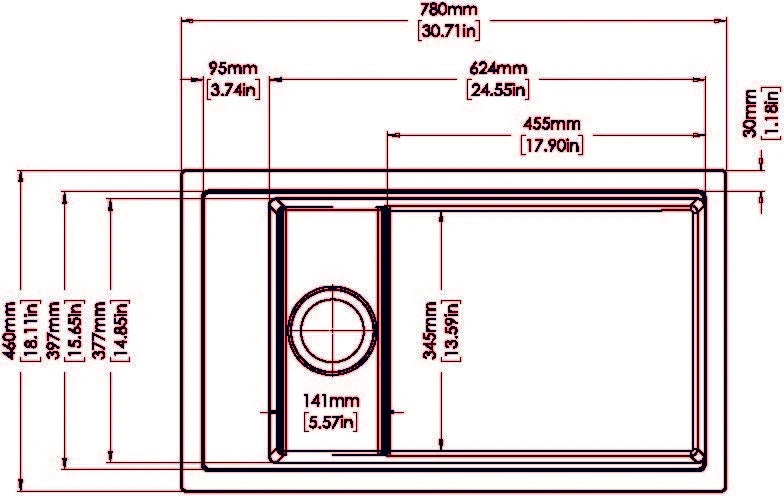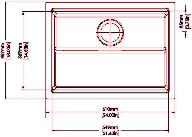 - Bowl Size: 624 mm x 397 mm X 249 mm