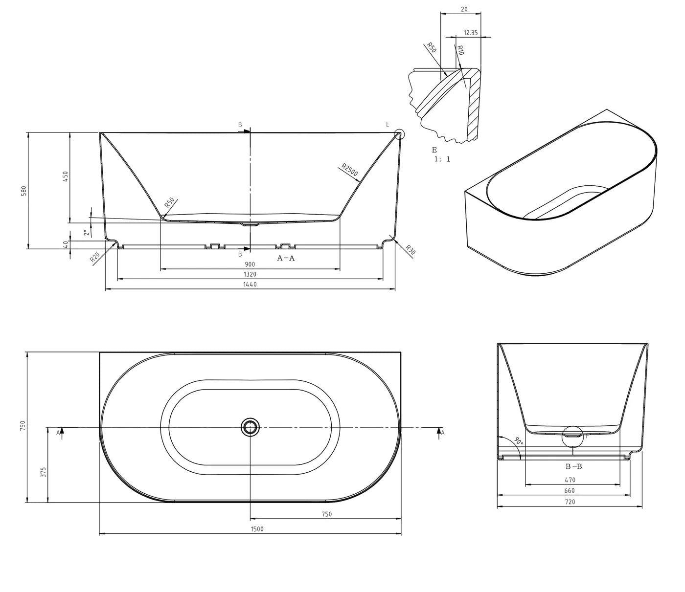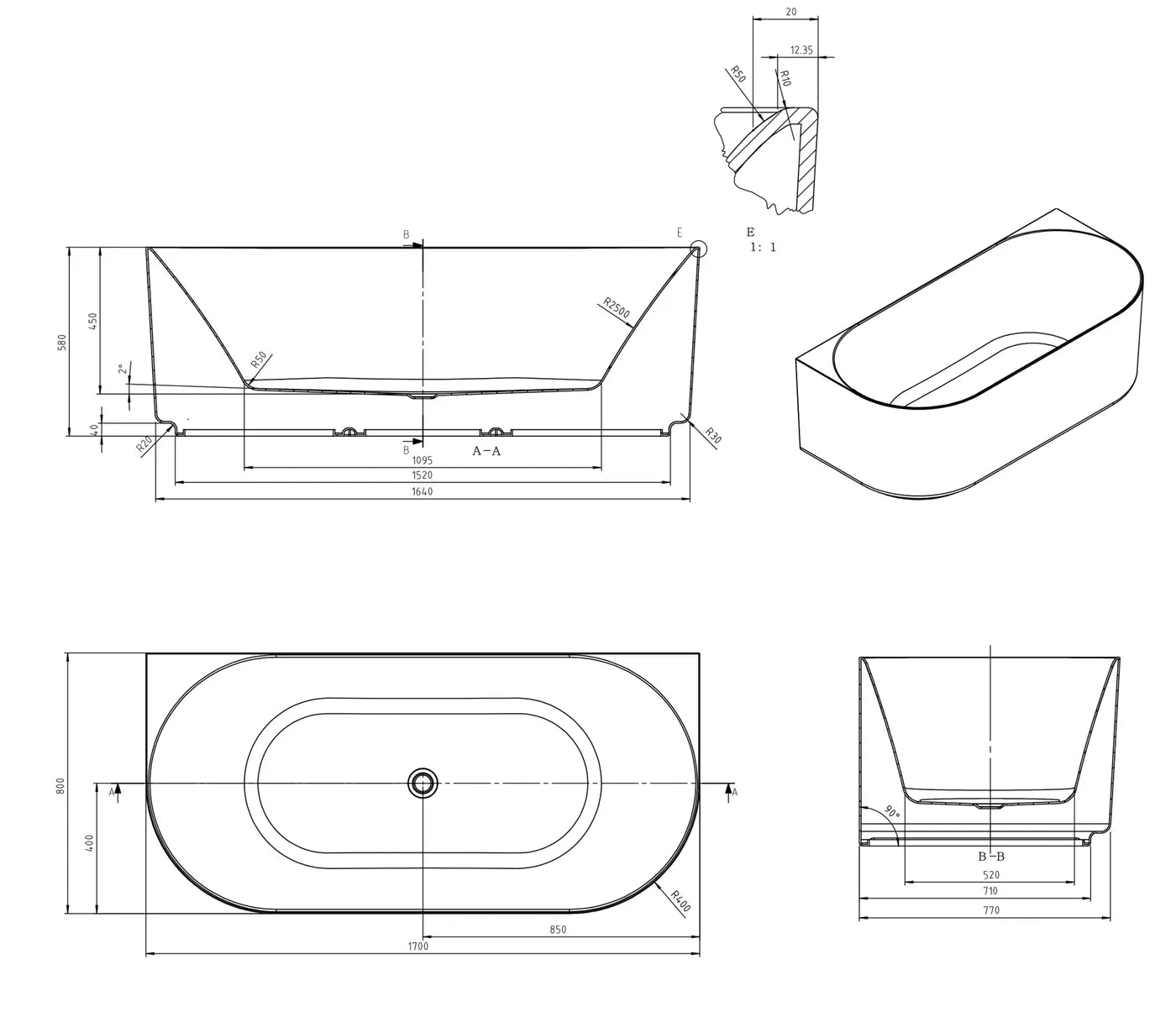 Celine BTW Multi-Fit Bathtub with Overflow | Otti