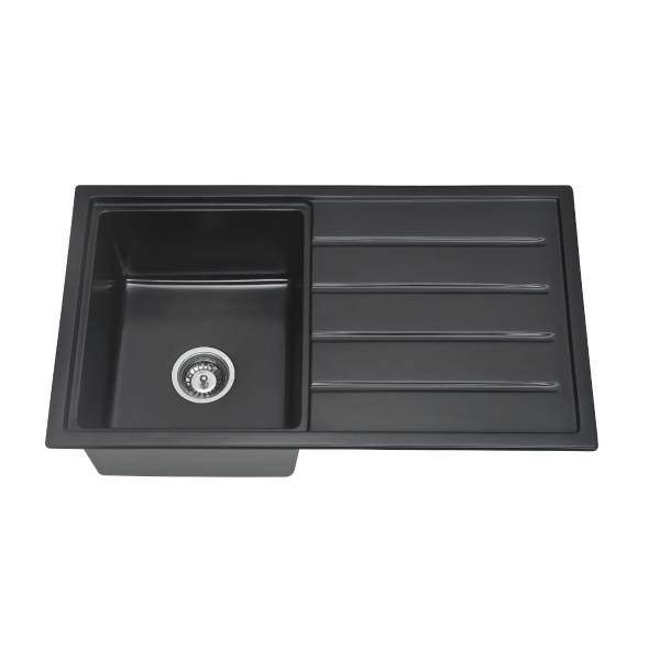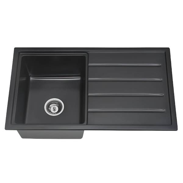 ROK Carbon Granite Single Bowl Sink with Drainer | Cob & Pen